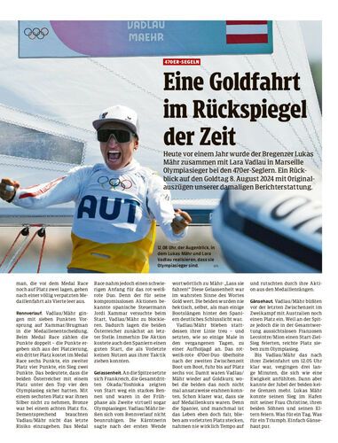 Heute vor einem Jahr wurde der Bregenzer Lukas Mähr zusammen mit Lara Vadlau in Marseille Olympiasieger bei den 470er-Seglern. Ein Rückblick auf den Goldtag 8. August 2024 mit Originalauszügen unserer damaligen Berichterstattung.