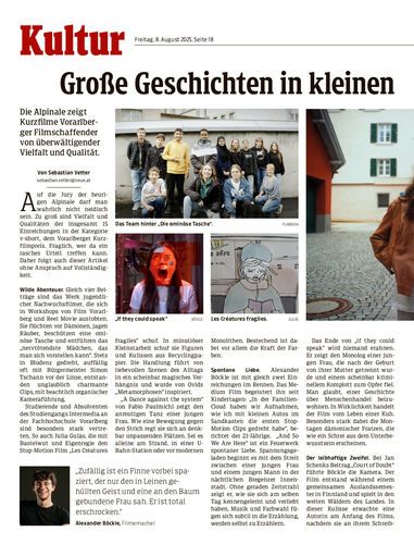 Die Alpinale zeigt Kurzfilme Vorarlberger Filmschaffender von überwältigender Vielfalt und Qualität.