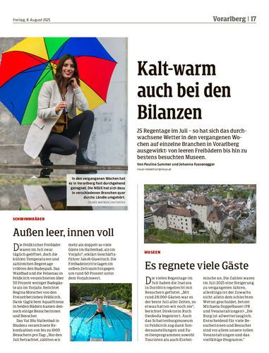 25 Regentage im Juli – so hat sich das durchwachsene Wetter in den vergangenen Wochen auf einzelne Branchen in Vorarlberg ausgewirkt: von leeren Freibädern bis hin zu bestens besuchten Museen.