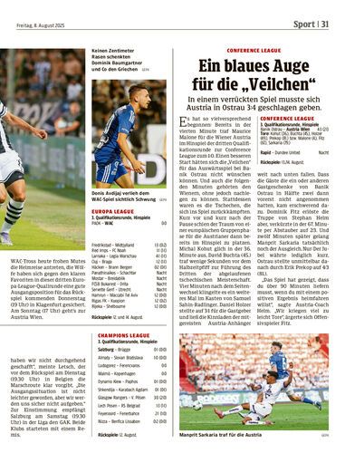 SW Bregenz ist heute um 18 Uhr in der Hauptstadt