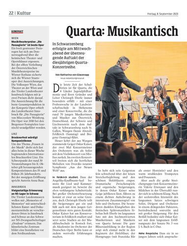 In Schwarzenberg erfolgte am Mittwochabend der überzeugende Auftakt der diesjährigen Quarta-Konzertreihe.