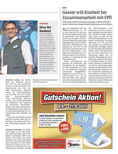 Forderung an ÖVP für Koalitonsabsage an FPÖ auf Bundesebene. Gasser hat entsprechende Erklärung unterschrieben.