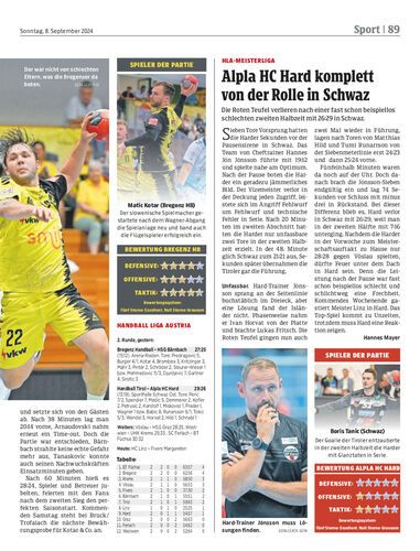 Spielbericht. Beim 28:24-Heimerfolg über die HSG Bärnbach/Köflach trugen sich neun Werfer in die Torschützenliste ein. Kotar machte die fehlende Kreis-Dominanz durch kluge Spielführung wett, band die Außenspieler erfolgreich ein. Slowene war bester Akteur.