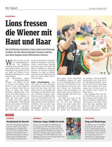 Die Raiffeisen Dornbirn Lions sind zwei Klassen stärker als die Vienna Basket Flames und lassen dem Gegner beim 92:60 keine Chance.