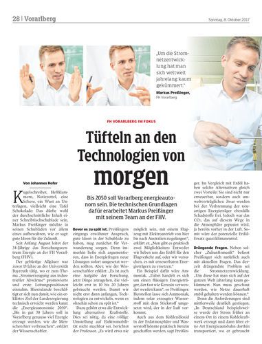 Bis 2050 soll Vorarlberg energieautonom sein. Die technischen Grundlagen dafür erarbeitet Markus Preißinger mit seinem Team an der FHV.