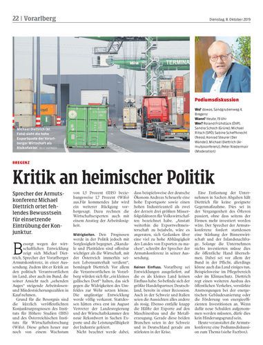 Sprecher der Armutskonferenz Michael Diettrich ortet fehlendes Bewusstsein für einsetzende Eintrübung der Konjunktur.