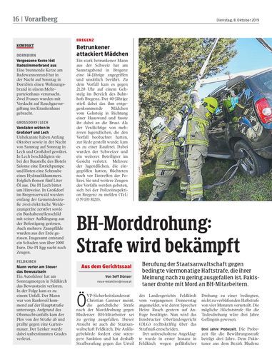 Berufung der Staatsanwaltschaft gegen bedingte viermonatige Haftstrafe, die ihrer Meinung nach zu gering ausgefallen ist. Pakistaner drohte mit Mord an BH-Mitarbeitern.