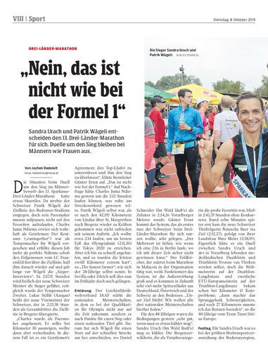 Sandra Urach und Patrik Wägeli entscheiden den 13. Drei-Länder-Marathon für sich. Duelle um den Sieg bleiben bei Männern wie Frauen aus.