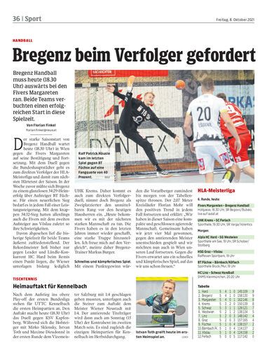 Bregenz Handball muss heute (18.30 Uhr) auswärts bei den Fivers Margareten ran. Beide Teams verbuchten einen erfolgreichen Start in diese Spielzeit.