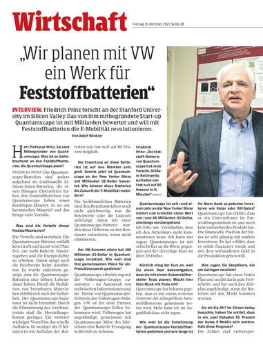 Friedrich Prinz forscht an der Stanford University im Silicon Valley. Das von ihm mitbegründete Start-up Quantumscape ist mit Milliarden bewertet und will mit Feststoffbatterien die E-Mobilität revolutionieren. Von Adolf Winkler