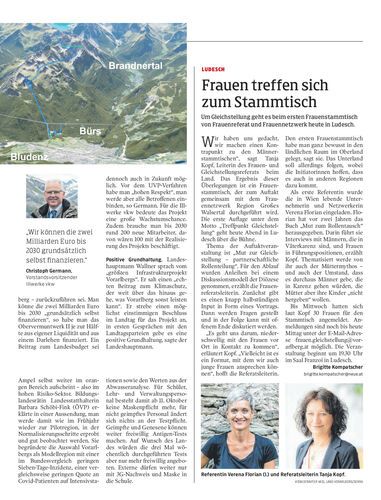 Um Gleichstellung geht es beim ersten Frauenstammtisch von Frauenreferat und Frauennetzwerk heute in Ludesch.