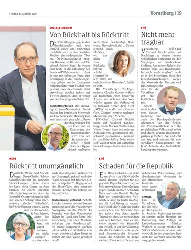 Landeshauptmann Markus Wallner (ÖVP) steht hinter dem Bundeskanzler, fordert aber volle Aufklärung. Für Grünen-Landesrat Johannes Rauch wiegen die Vorwürfe gegen den Kanzler schwer.