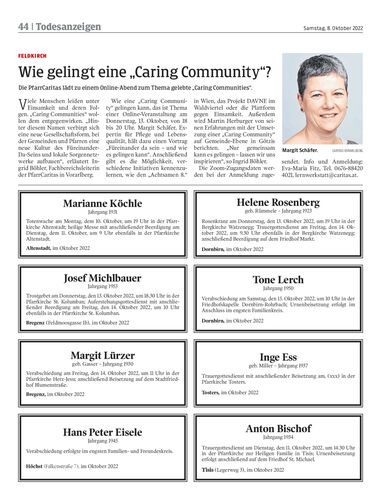 Die PfarrCaritas lädt zu einem Online-Abend zum Thema gelebte „Caring Communities“.