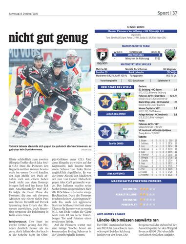 Spielbericht. Die Bemer Pioneers Vorarlberg verlieren gegen HK Olimpija mit 1:4. Viele Fehler zu Beginn leiten die Heimpleite ein.