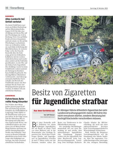 16-Jähriger führte öffentlich Zigaretten bei sich: Landesverwaltungsgericht meint, BH hätte ihn nicht ermahnen dürfen, sondern Beratung bei Suchtgiftfachstelle vorschreiben müssen.