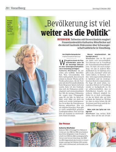 Interview. Teilweise mit Unverständnis reagiert Frauenlandesrätin Katharina Wiesflecker auf die derzeit laufende Diskussion über Schwangerschaftsabbrüche in Vorarlberg.