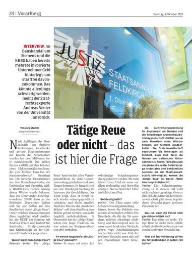 Interview. Im Bauskandal um Siemens und die KHBG haben bereits mehrere involvierte Unternehmer Geld hinterlegt, um straffrei davonzukommen. Das könnte allerdings schwierig werden, meint der Strafrechtsexperte Andreas Venier von der Universität Innsbruck.