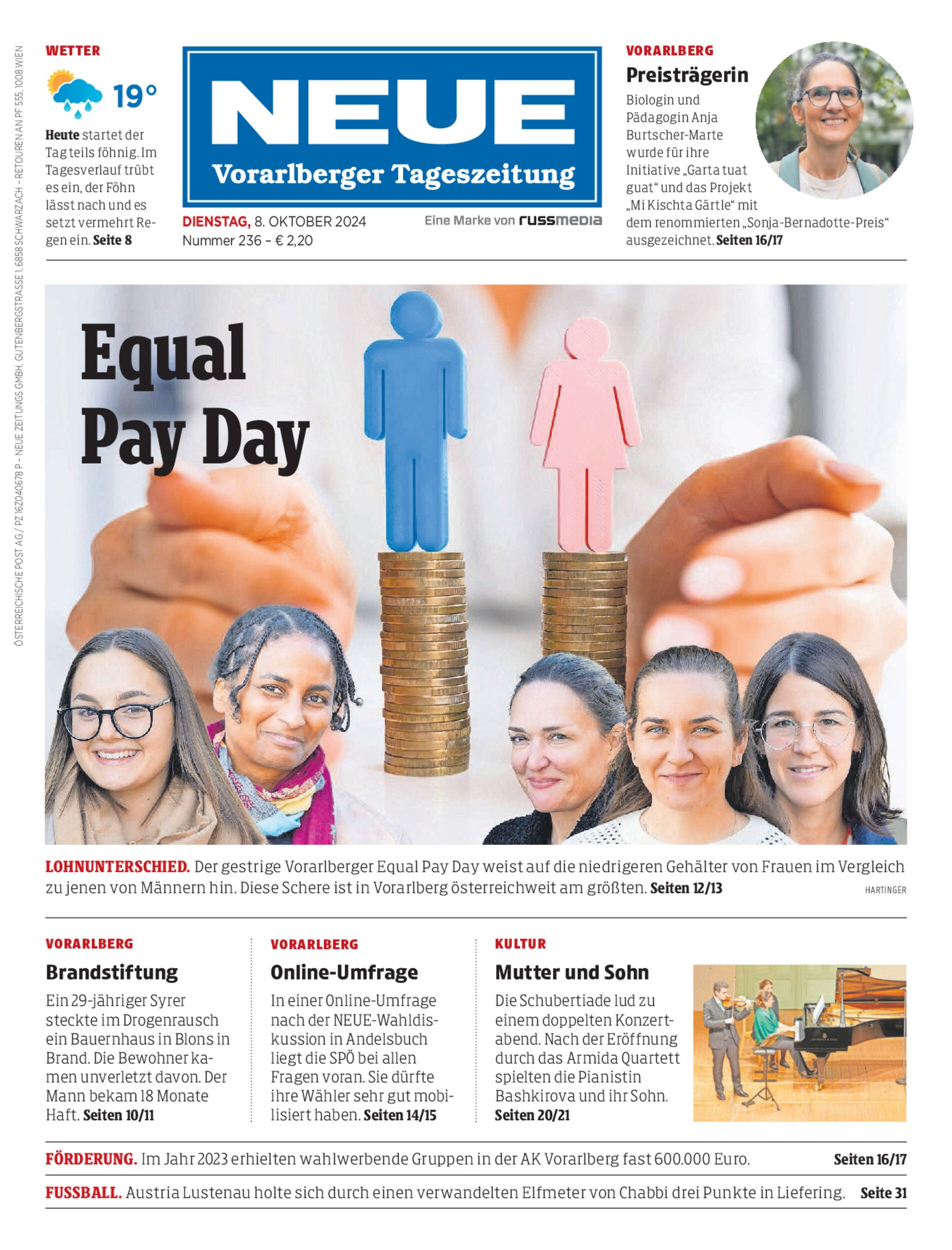 Am Montag war der Vorarlberger Equal Pay Day. Er weist auf die Lohnunterschiede zwischen Männern und Frauen hin – die hierzulande im Bundesländervergleich am größten sind.