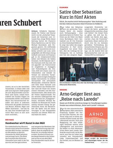 Heute um 19.30 Uhr wird Arno Geiger im Vorarlberger Landestheater aus seinem Roman „Reise nach Laredo“ vorlesen.