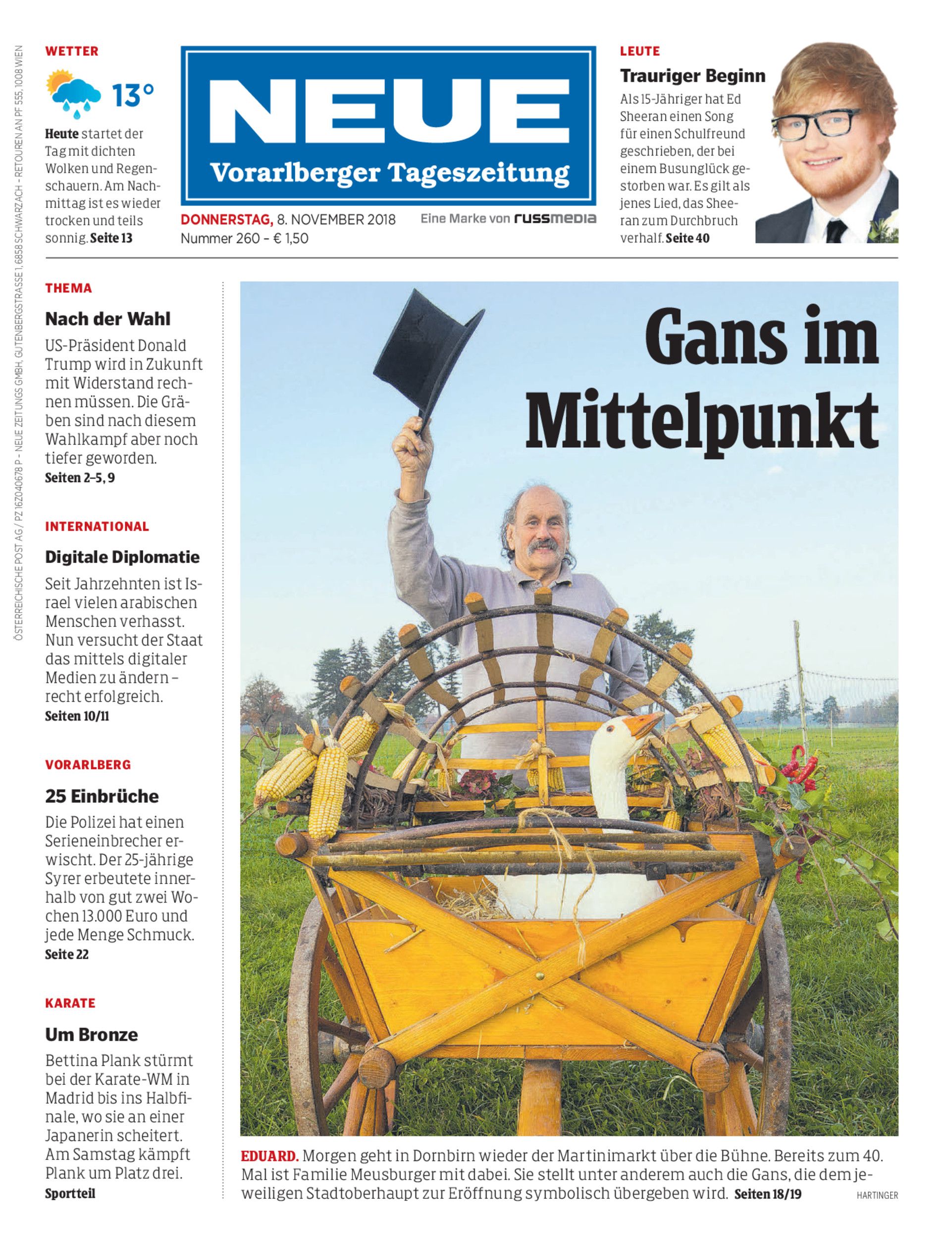 Morgen ist wieder Martinimarkt in Dornbirn. Familie Meusburger ist mit ihren Tieren seit 40 Jahren dabei.