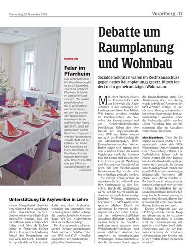 Sozialdemokraten waren im Rechtsausschuss gegen neues Raumplanungsgesetz. Ritsch fordert mehr gemeinnützigen Wohnraum.