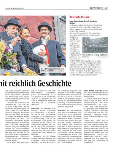 Heute jährt sich zum 44. Mal der Martinimarkt in Dornbirn. Die Geschichte und Tradition des Marktes reichen jedoch noch viel weiter zurück.