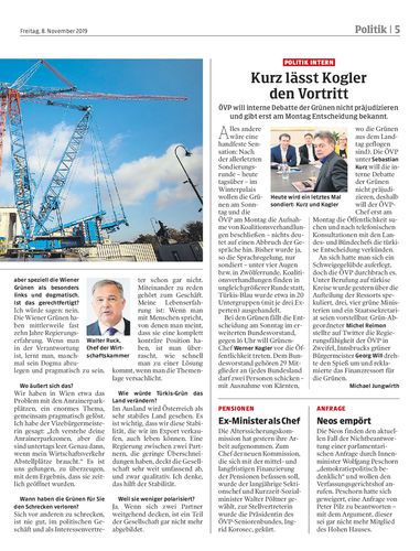Walter Ruck, Präsident der Wiener Wirtschaftskammer, hat gute Erfahrungen mit den als linke Fundis verschrienen Wiener Grünen gemacht. Der ÖVP-nahe Vertreter der Wiener Wirtschaft bricht eine Lanze für Türkis-Grün. Von Veronika Dolna