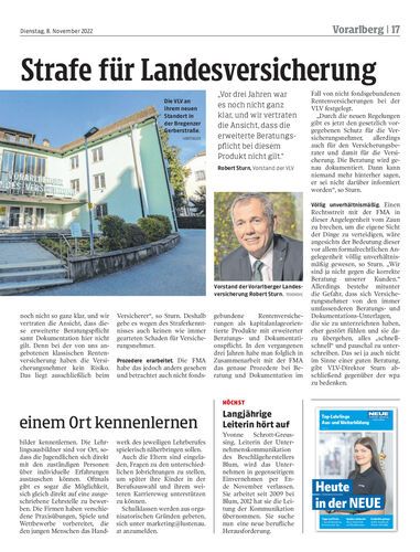 Finanzmarktaufsicht (FMA) stellte fest, dass Vorarlberger Landesversicherung ihrer Beratungspflicht nicht im rechtlich gebotenen Maß nachgekommen ist. Für Kunden sei kein Schaden entstanden.