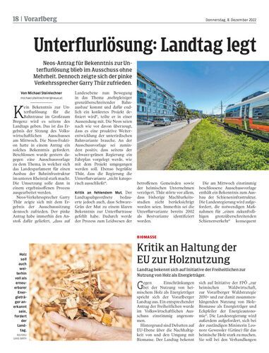 Neos-Antrag für Bekenntnis zur Unterflurlösung blieb im Ausschuss ohne Mehrheit. Dennoch zeigte sich der pinke Verkehrssprecher Garry Thür zufrieden.