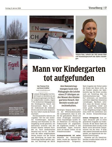 Am Donnerstagmorgen fand eine Pädagogin die Leiche eines 27-Jährigen an der Mauer des Kindergartens Forach. Der Betrieb wurde aufrechterhalten.
