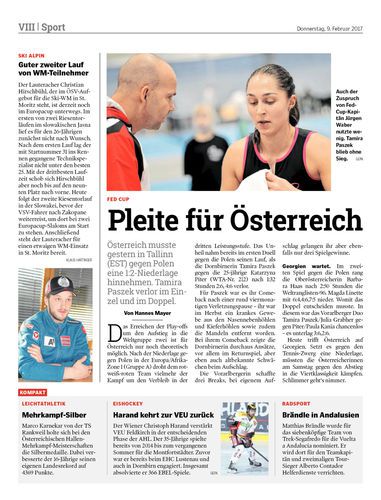 Österreich musste gestern in Tallinn (EST) gegen Polen eine 1:2-Niederlage hinnehmen. Tamira Paszek verlor im Einzel und im Doppel.