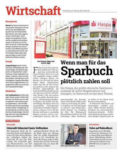 Die Haspa, die größte deutsche Sparkasse, verlangt ab sofort Negativzinsen auf Einlagen. In Österreich ist das kein Thema.