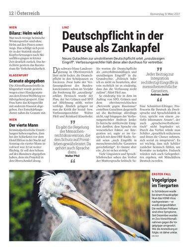 Neues Gutachten zur umstrittenen Deutschpflicht ortet „unzulässigen Eingriff“. Verfassungsrechtler hält diese aber durchaus für vertretbar.