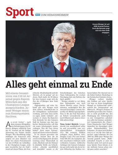 Mit einem Gesamtscore von 2:10 ist Arsenal gegen Bayern München aus der Champions League ausgeschieden. Arsene Wenger muss nun Konsequenzen fürchten.