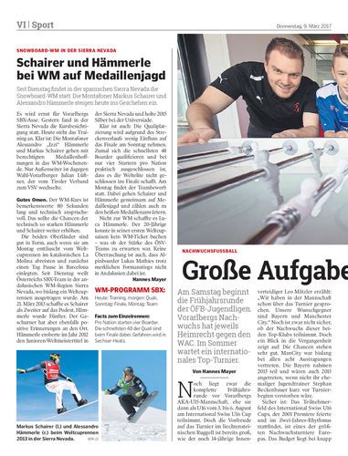 Seit Dienstag findet in der spanischen Sierra Nevada die Snowboard-WM statt. Die Montafoner Markus Schairer und Alessandro Hämmerle steigen heute ins Geschehen ein.