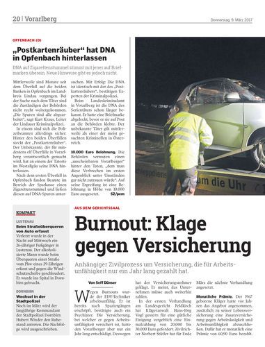 Anhängiger Zivilprozess um Versicherung, die für Arbeitsunfähigkeit nur ein Jahr lang gezahlt hat.