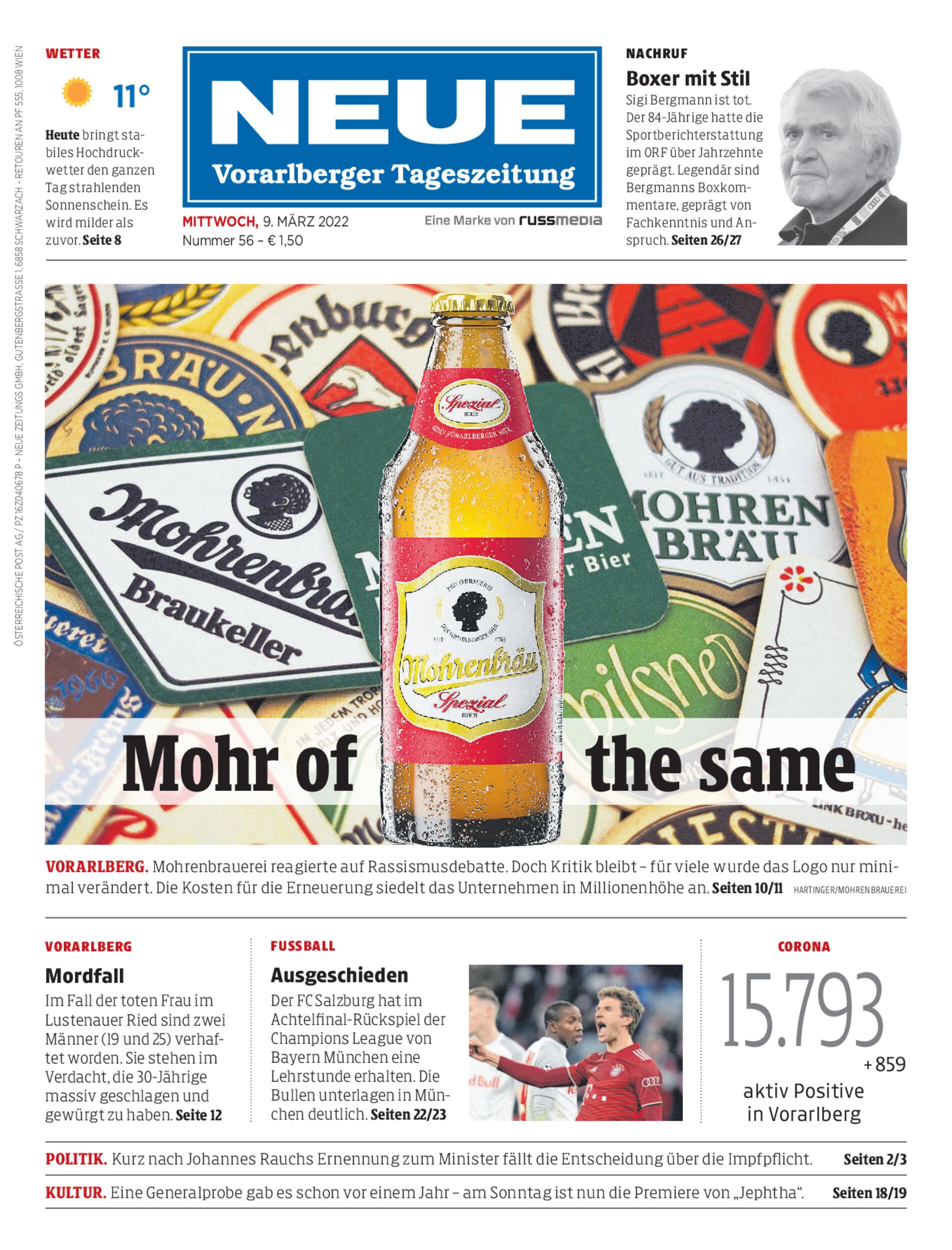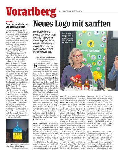Mohrenbrauerei stellte das neue Logo vor. Die Silhouette eines Kopfes bleibt, wurde jedoch angepasst. Historische Logos werden nicht mehr verwendet.