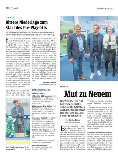 Der EC Bregenzerwald steht im Duell mit den HC Gherdeina bereits mit dem Rücken zur Wand. Zwei Tore sind zu wenig.