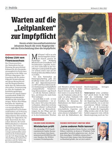 Heute erlebt Gesundheitsminister Johannes Rauch die erste Nagelprobe – mit der Entscheidung über die Impfpflicht.