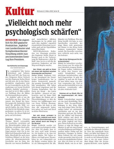 Interview. Die eigentlich für 2021 geplante Produktion „Jephtha“ von Landestheater und Symphonieorchester Vorarlberg erlebt nun am kommenden Sonntag ihre Premiere.