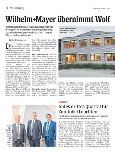 Die Übernahme des Metallbauunternehmens erfolgt im Rahmen einer Nachfolgeregelung. Sohn der bisherigen Gesellschafter, Thomas Wolf, arbeitet weiter mit.