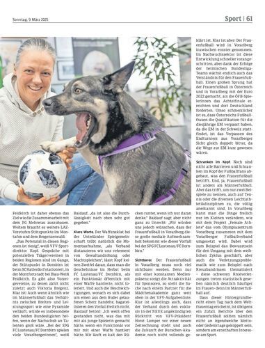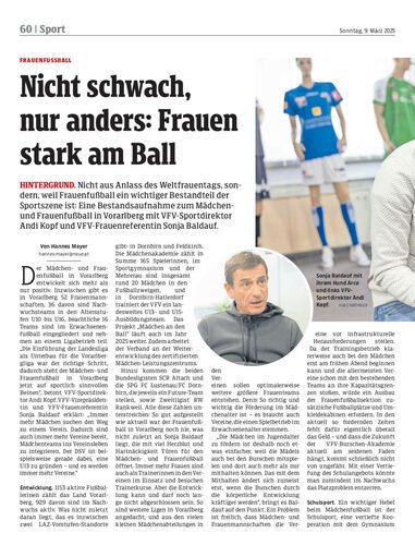 Hintergrund. Nicht aus Anlass des Weltfrauentags, sondern, weil Frauenfußball ein wichtiger Bestandteil der Sportszene ist: Eine Bestandsaufnahme zum Mädchen- und Frauenfußball in Vorarlberg mit VFV-Sportdirektor Andi Kopf und VFV-Frauenreferentin Sonja Baldauf.