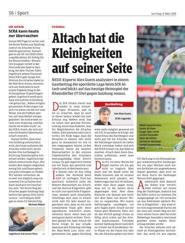 NEUE-Experte Alex Guem analysiert in einem Gastbeitrag die sportliche Lage beim SCR Altach und blickt auf das heutige Heimspiel der Rheindörfler (17 Uhr) gegen Salzburg voraus.