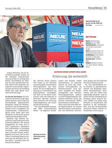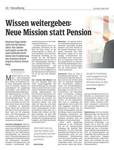Manfred Vogt bleibt auch mit 66 Jahren aktiv: Als Lehrbeauftragter an der FH und treibende Kraft hinter der Etablierung des Austrian Senior Experts Pool in Vorarlberg.
