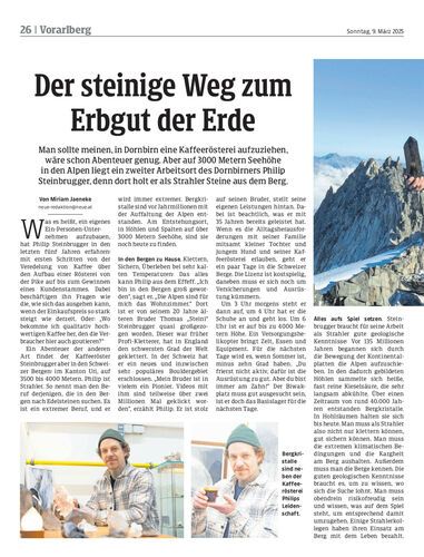 Man sollte meinen, in Dornbirn eine Kaffeerösterei aufzuziehen, wäre schon Abenteuer genug. Aber auf 3000 Metern Seehöhe in den Alpen liegt ein zweiter Arbeitsort des Dornbirners Philip Steinbrugger, denn dort holt er als Strahler Steine aus dem Berg.