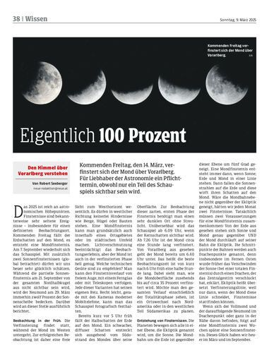 Kommenden Freitag, den 14. März, verfinstert sich der Mond über Vorarlberg. Für Liebhaber der Astronomie ein Pflichttermin, obwohl nur ein Teil des Schauspiels sichtbar sein wird.