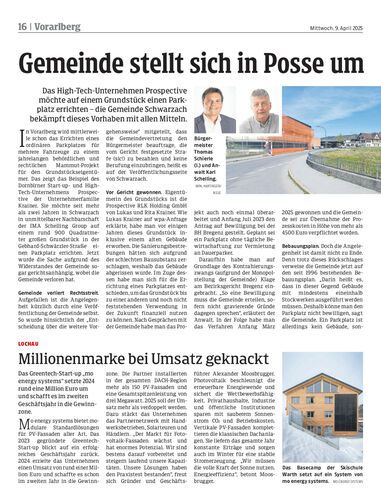 Das High-Tech-Unternehmen Prospective möchte auf einem Grundstück einen Parkplatz errichten – die Gemeinde Schwarzach bekämpft dieses Vorhaben mit allen Mitteln.