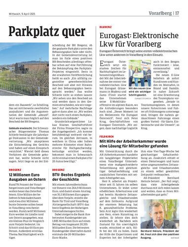 Eurogast Österreich bringt seine ersten vollelektronischen Lkw unter anderem in Vorarlberg in den Einsatz.
