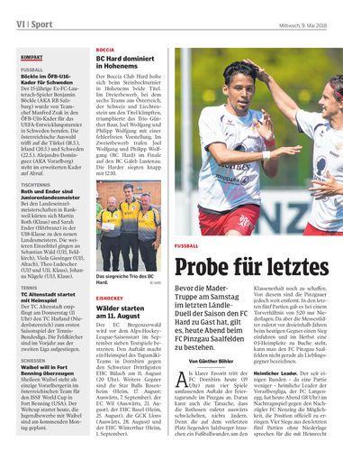 Bevor die Mader-Truppe am Samstag im letzten Ländle-Duell der Saison den FC Hard zu Gast hat, gilt es, heute Abend beim FC Pinzgau Saalfelden zu bestehen.