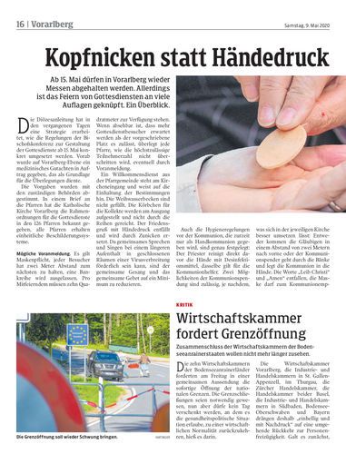 Ab 15. Mai dürfen in Vorarlberg wieder Messen abgehalten werden. Allerdings ist das Feiern von Gottesdiensten an viele Auflagen geknüpft. Ein Überblick.